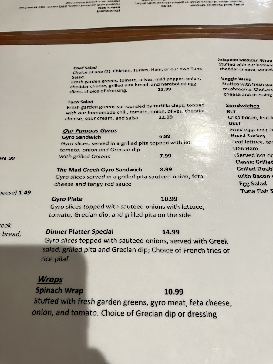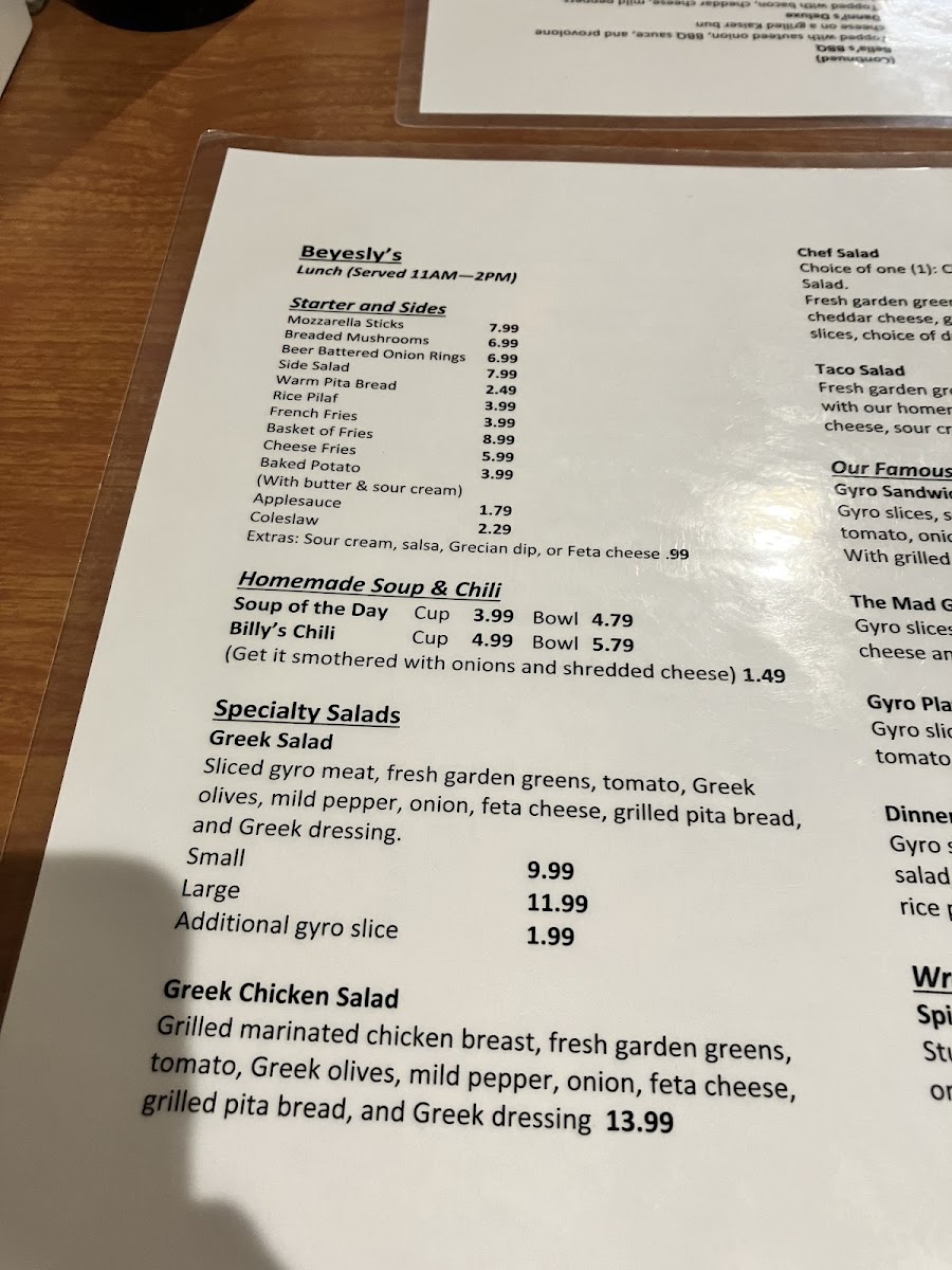Additions like mozzarella sticks, beer-battered onion rings, or a simple side of warm pita bread complement the main dishes without overwhelming, creating a well-rounded menu suitable for casual meals with friends or family. These choices fit naturally into the restaurant’s inviting, familiar setting, where meals feel like a moment of quiet comfort.